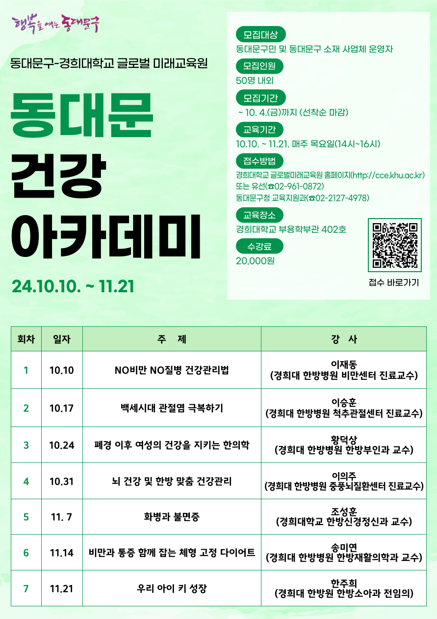 2024년 하반기 (동대문구-경희대 글로벌 미래교육원) 동대문 건강 아카데미 수강생 모집